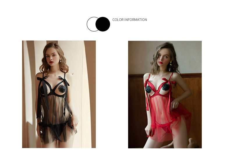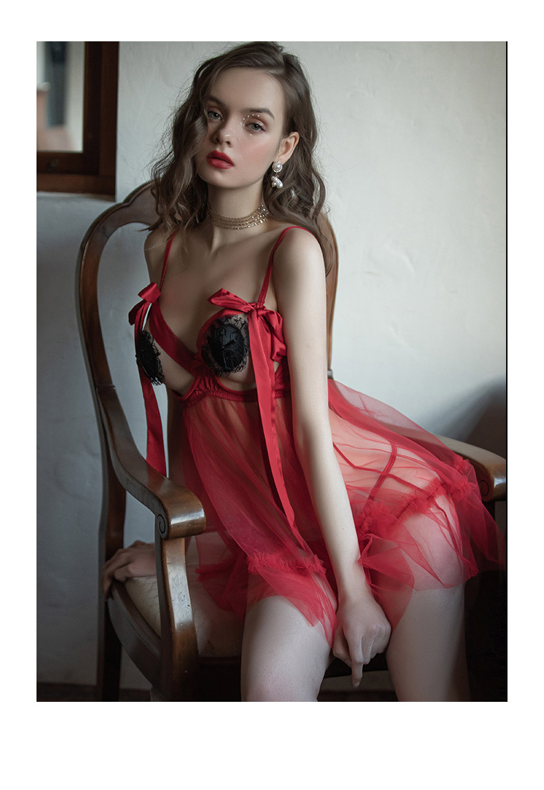 商品名:長いリボンオープンバストべビードール。ブラック(BLACK)