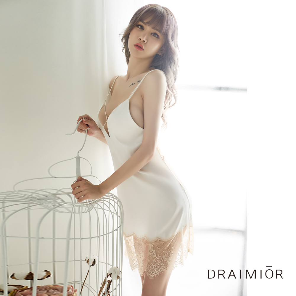 DRAIMIORエレガントシルクタッチスリップドレス。ホワイト(WHITE)