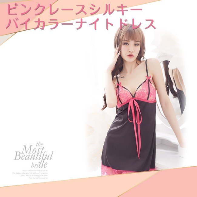 可愛いけどちょっとエロい、ピンク×ブラックのスリップドレス。