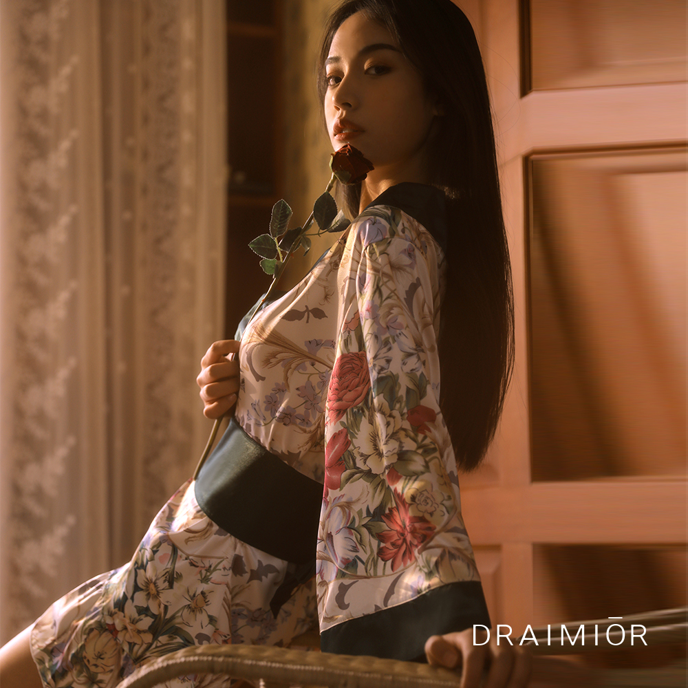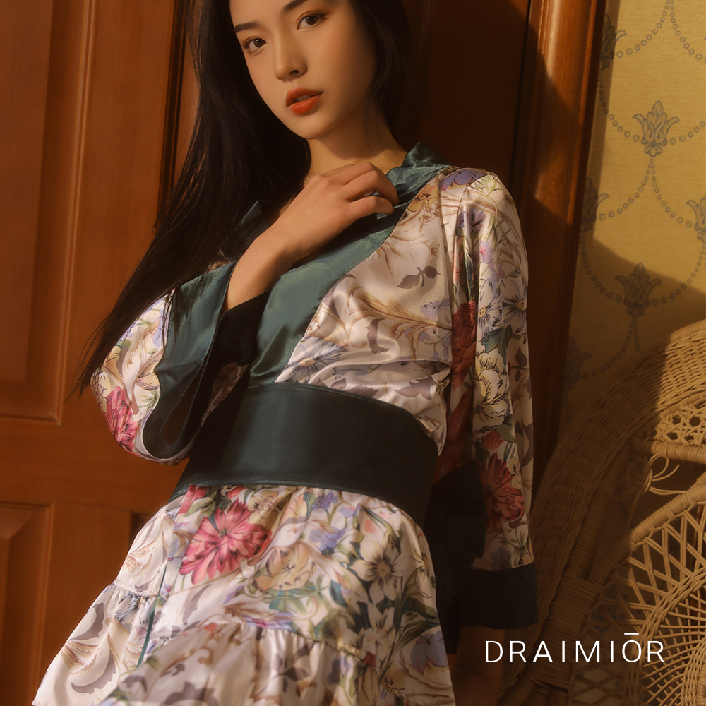 DRAIMIOR花柄グリーンパイピング花魁着物ドレス