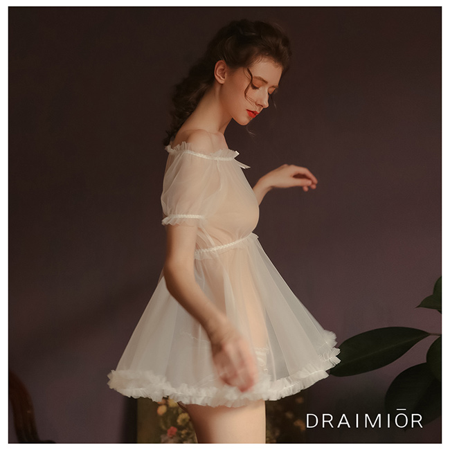 [:tw]久慕雅黛 DRAIMIOR繡花蕾絲網紗花邊睡衣。白色[:ja]DRAIMIOR刺繍レースべビードール Tバック付き 2点セット。ホワイト(WHITE)[:]