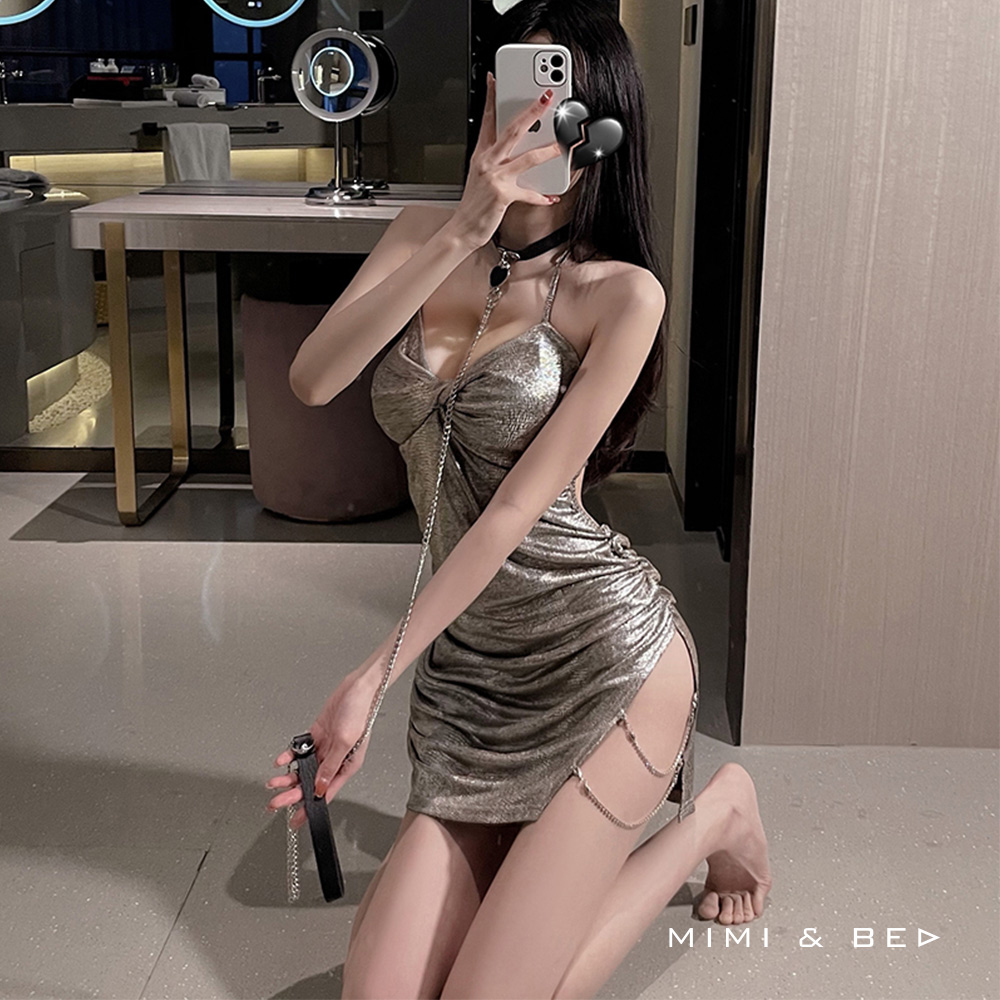 夜店女神閃耀深V繫脖美背吊帶裙。閃耀佳人 MIMIBED