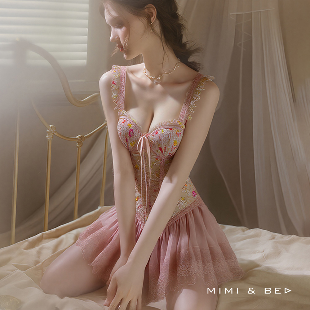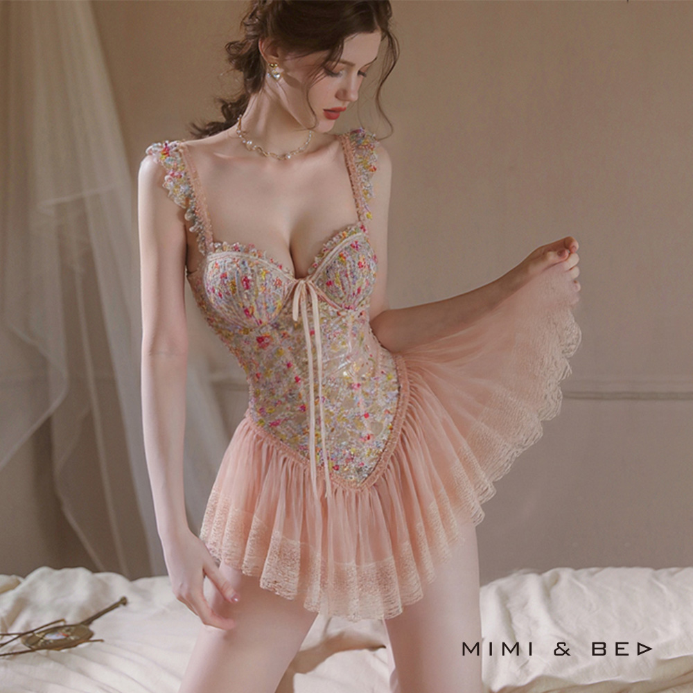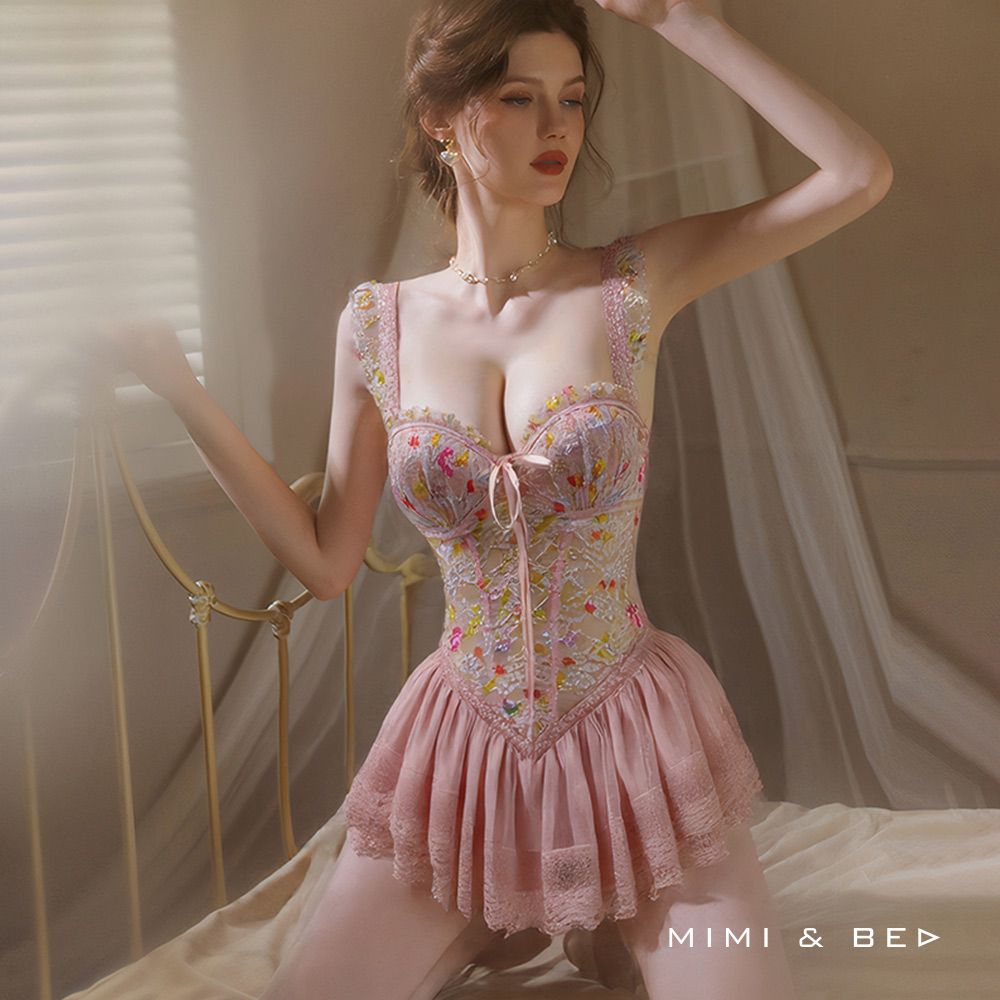 [:tw]花漾物語。立體刺繡蕾絲性感美背連身馬甲。2色 MIMIBED[:]