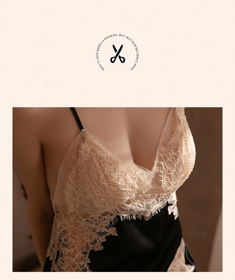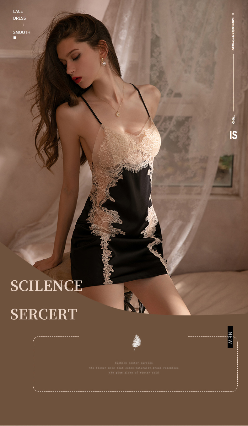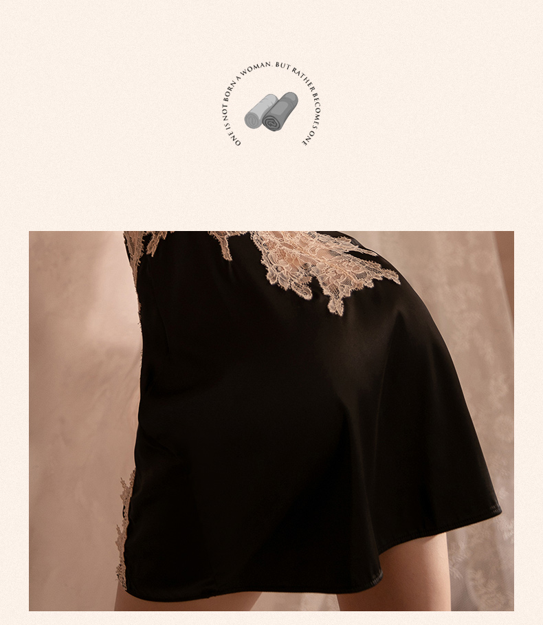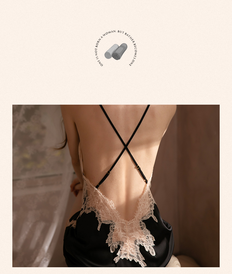 商品名:レース付きバッククロススリップドレス。ブラック(BLACK)
