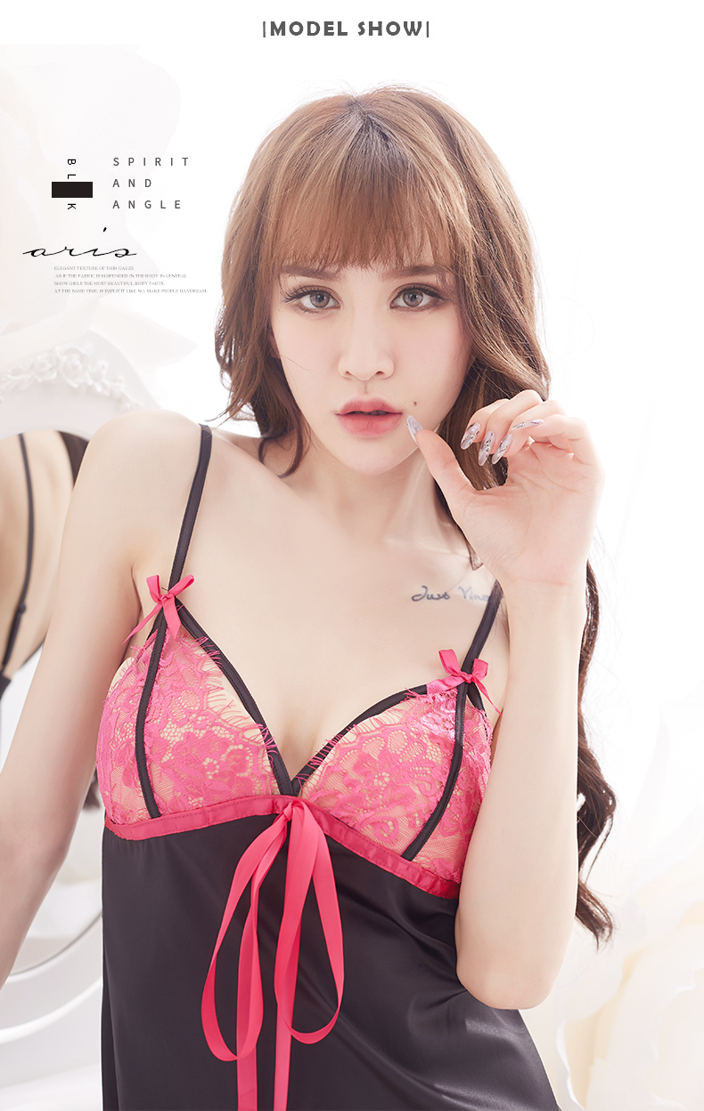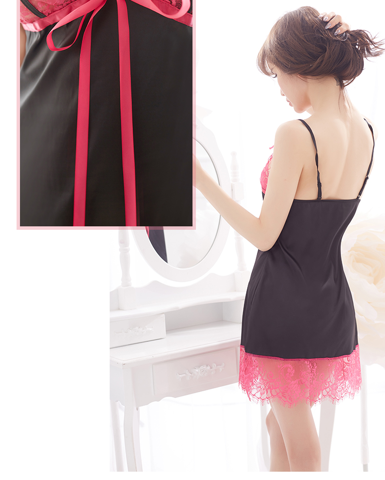 可愛いけどちょっとエロい、ピンク×ブラックのスリップドレス。