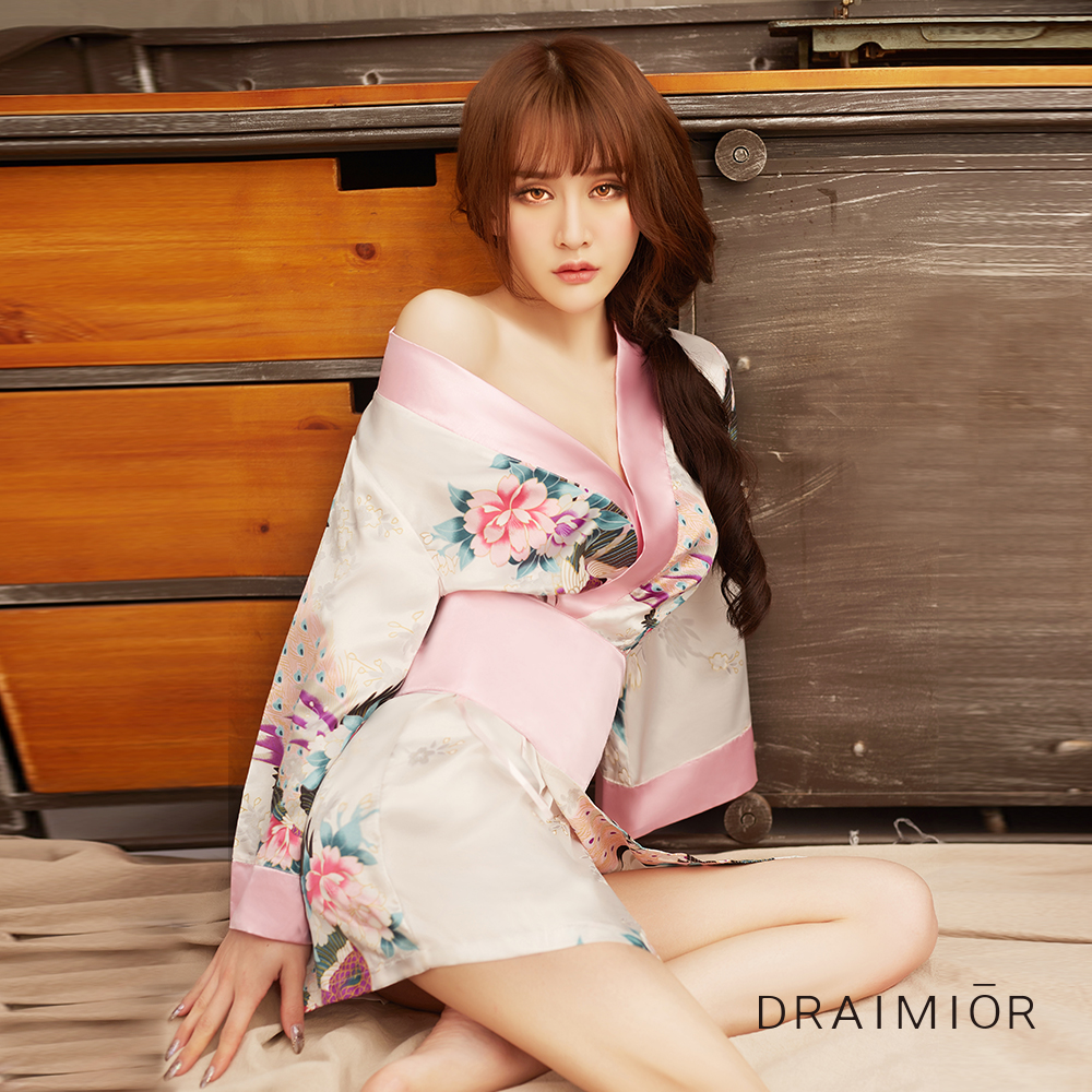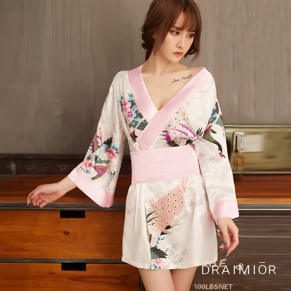 商品名:クジャク柄ピンク着物風ガウン
