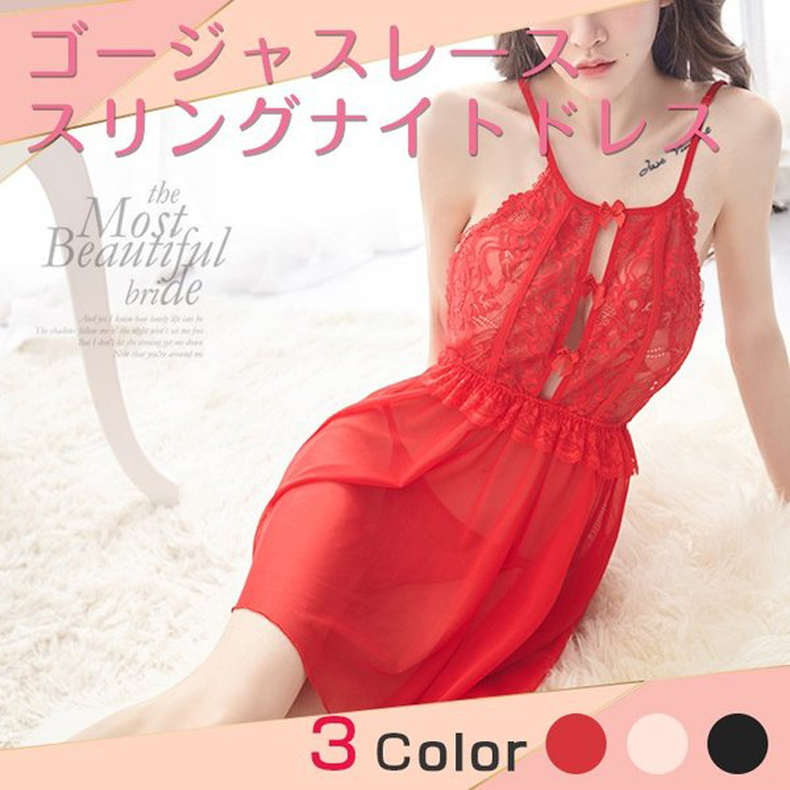 ゴージャスレーススリングナイトドレス