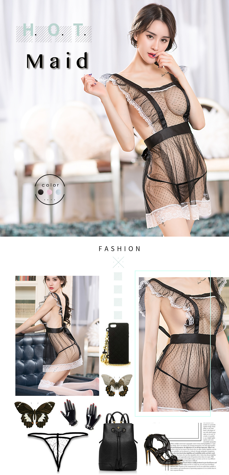 商品名:DRAIMIORドットシースルーフリルエプロン フルセット