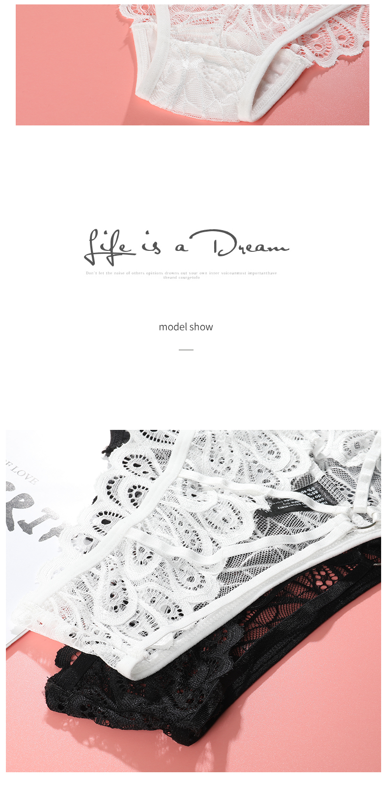 素材:ポリエステル、ナイロン、レース、スパンデックス