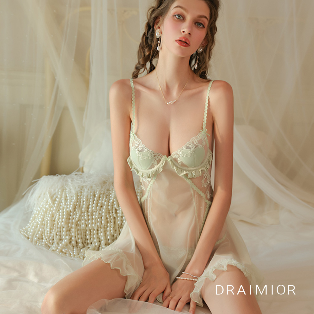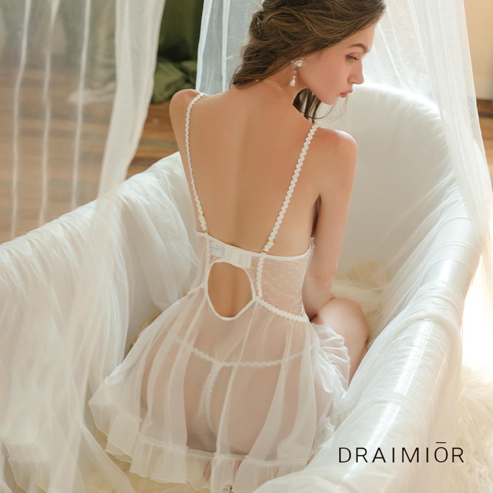 透紗刺繡美背優雅睡衣。2色 DRAIMIOR