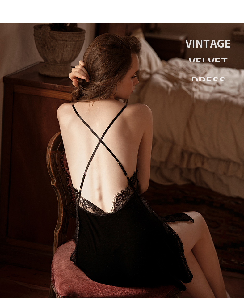 商品名:DRAIMIORアイラッシュレースベルベットスリップドレス