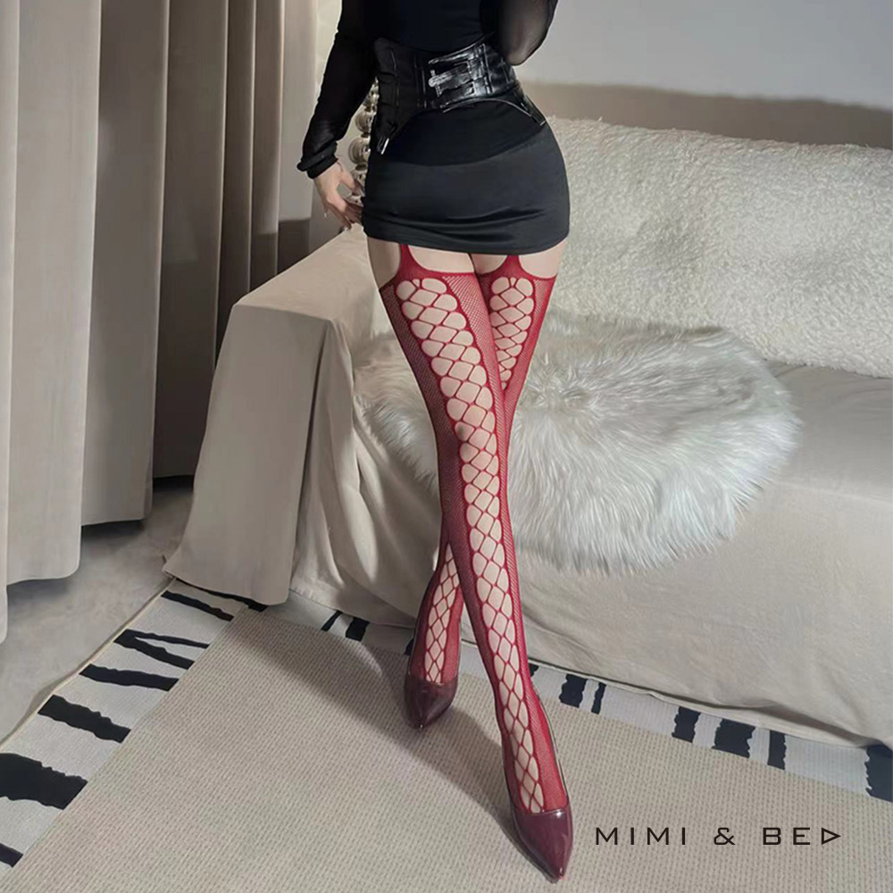 交織幾何。蕾絲鏤空性感吊帶誘惑網襪。黑色 MIMIBED個