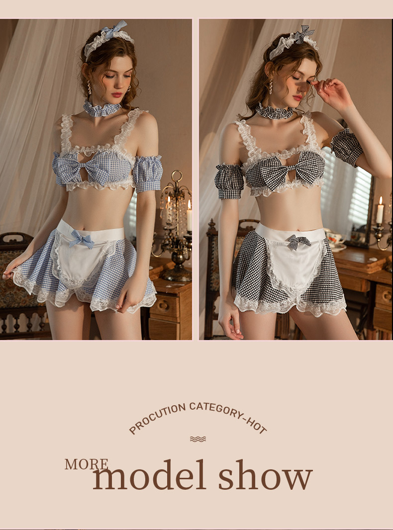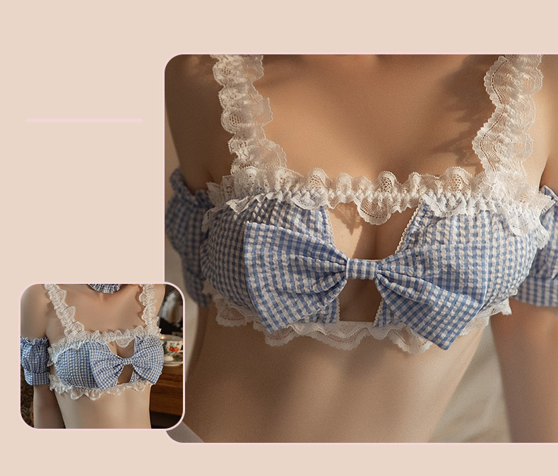 商品名:DRAIMIORチェック柄メイドコスチューム上下セット。ベビーブルー(BABY BLUE)