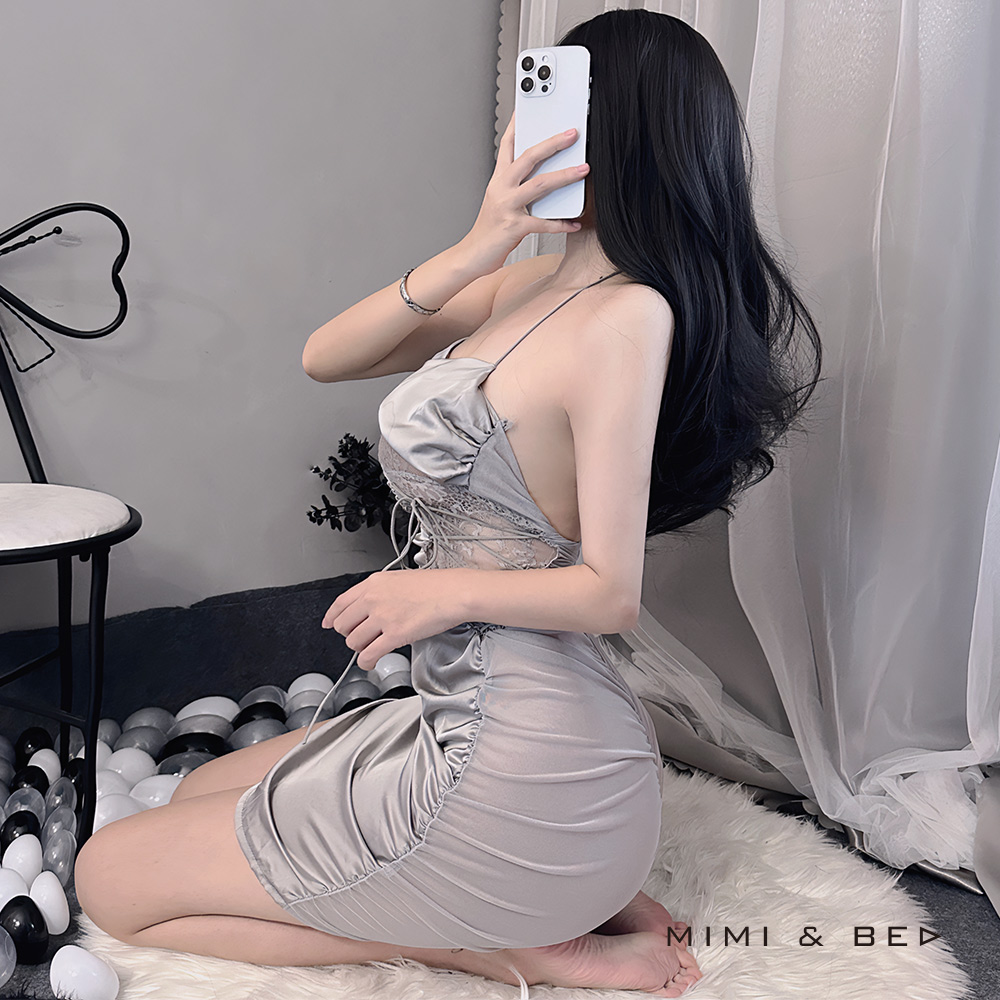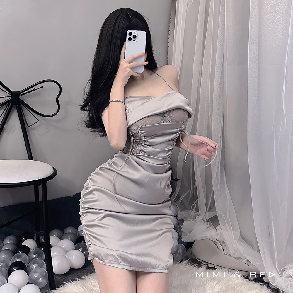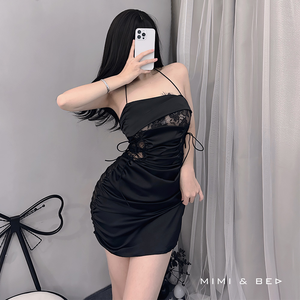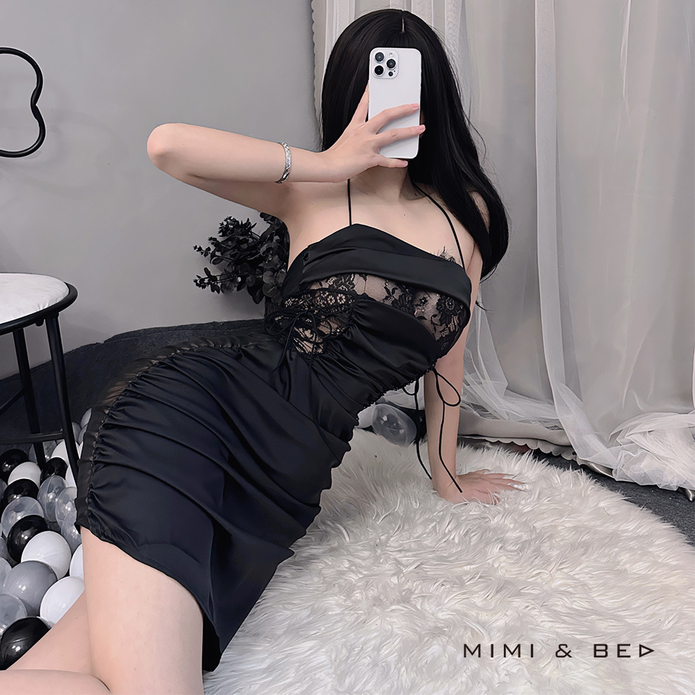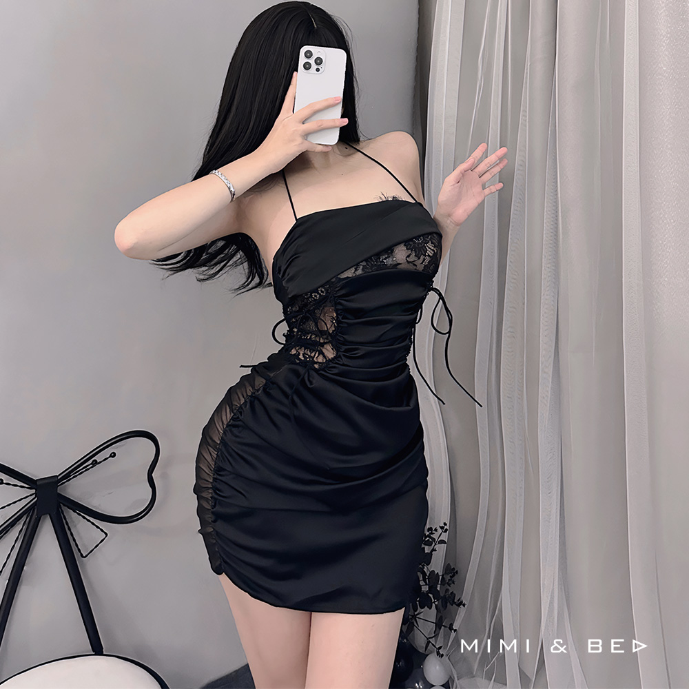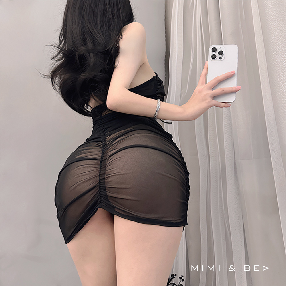 OL秘書コスプレ レースカットアウト セクシーワンピース ボディラインドレス(全2色)MIMIBED