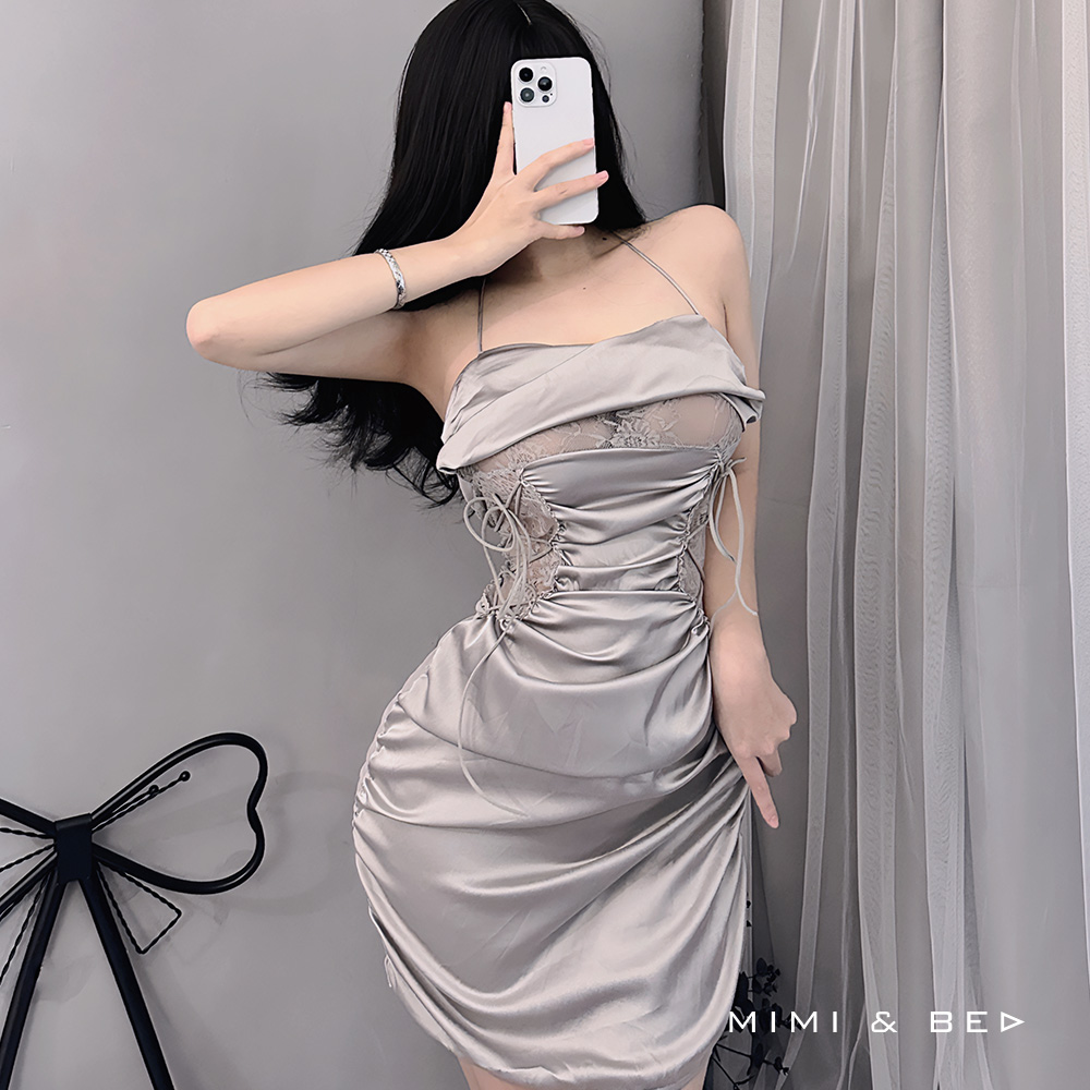 • レース素材とカットアウトデザインが魅力のセクシーワンピース。