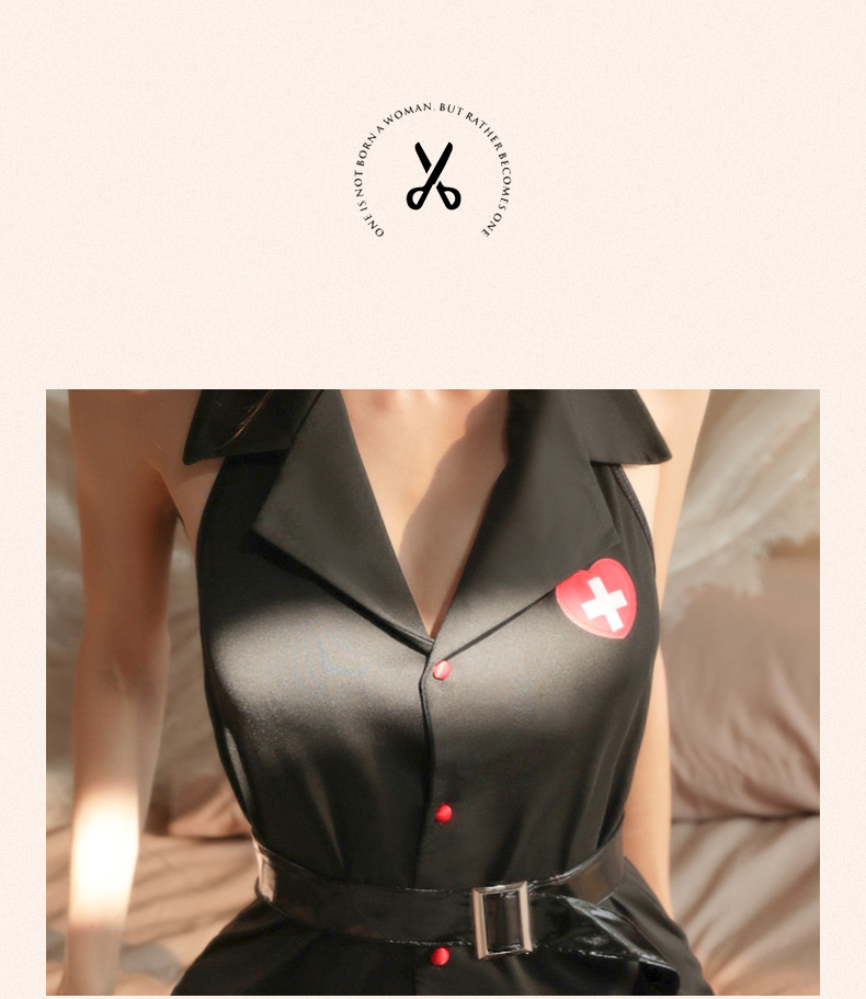 商品名:ホルターネックナースコスチューム。ブラック(BLACK)