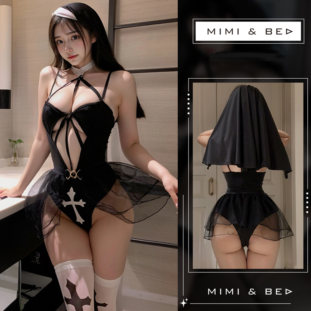 暗夜魅影。純愛Sister修女開襠連身衣套裝 MIMIBED