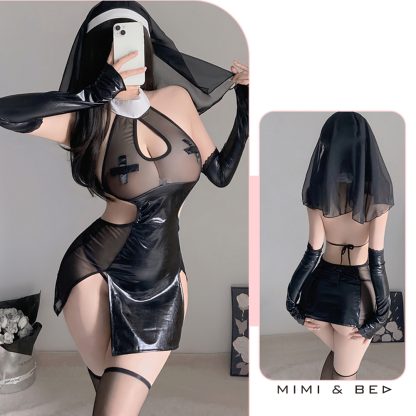 暗黑魅夜。火辣Sister修女漆皮透紗套裝 MIMIBED