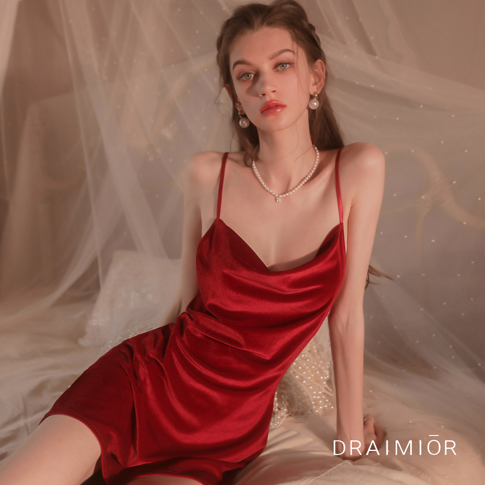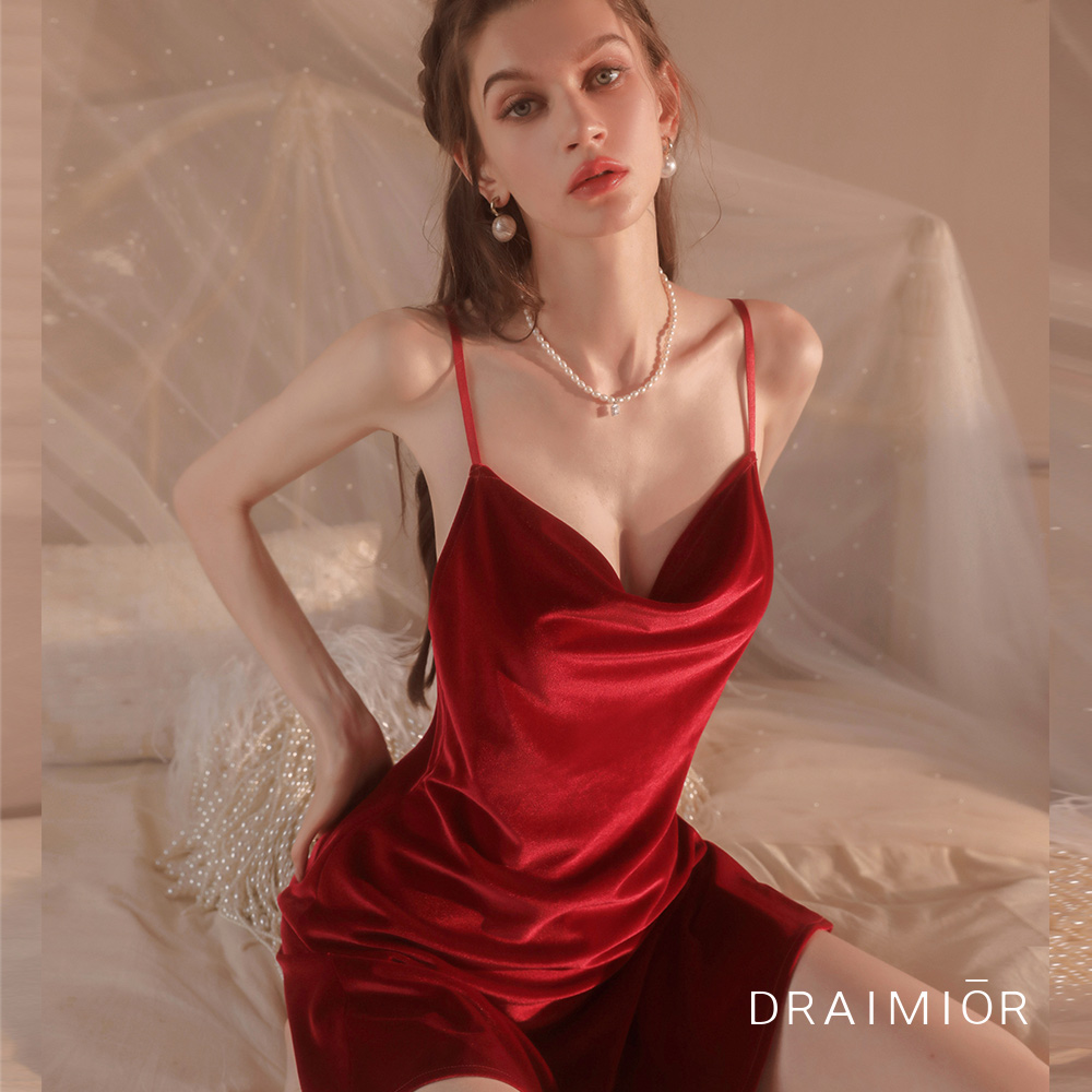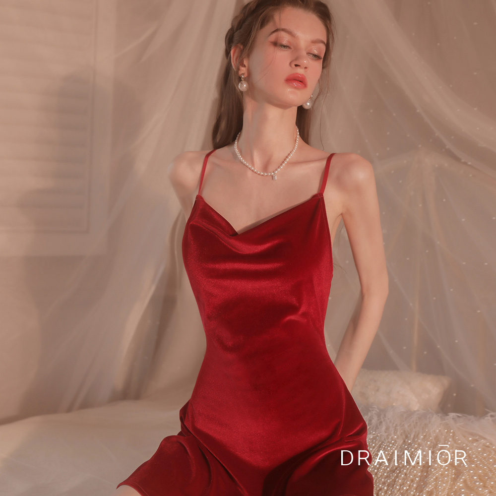 商品名:久慕雅黛ドレープベルベットスリップドレス。レッド(RED)