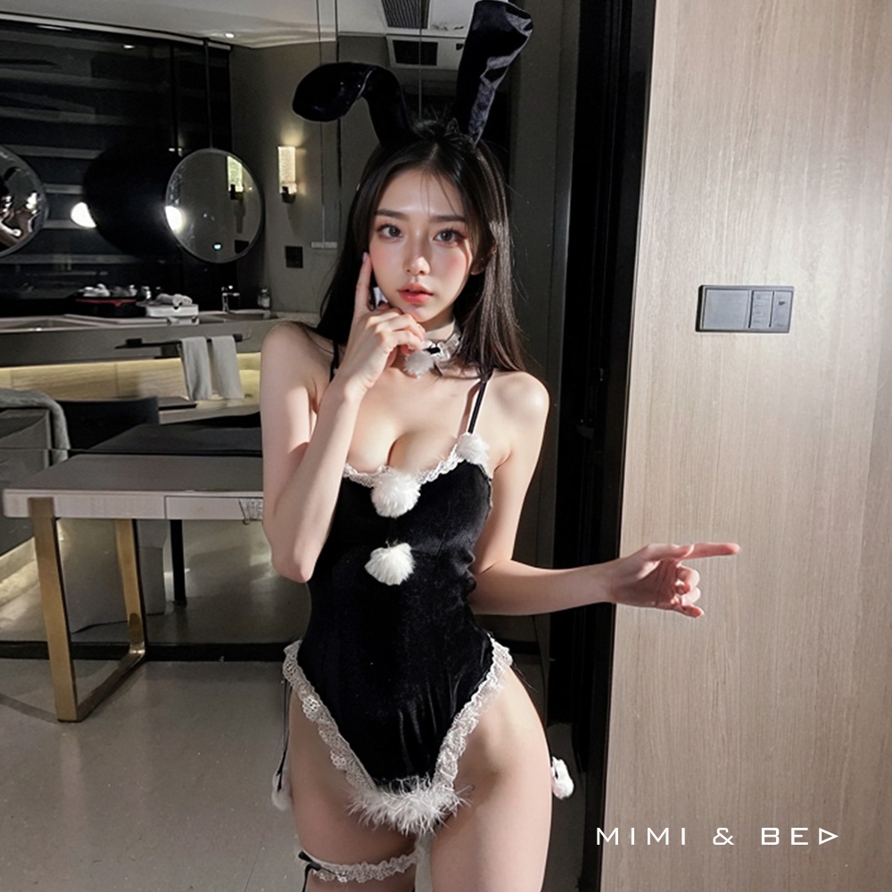 聖誕小萌兔毛絨性感連身衣套裝。2色 MIMIBED個