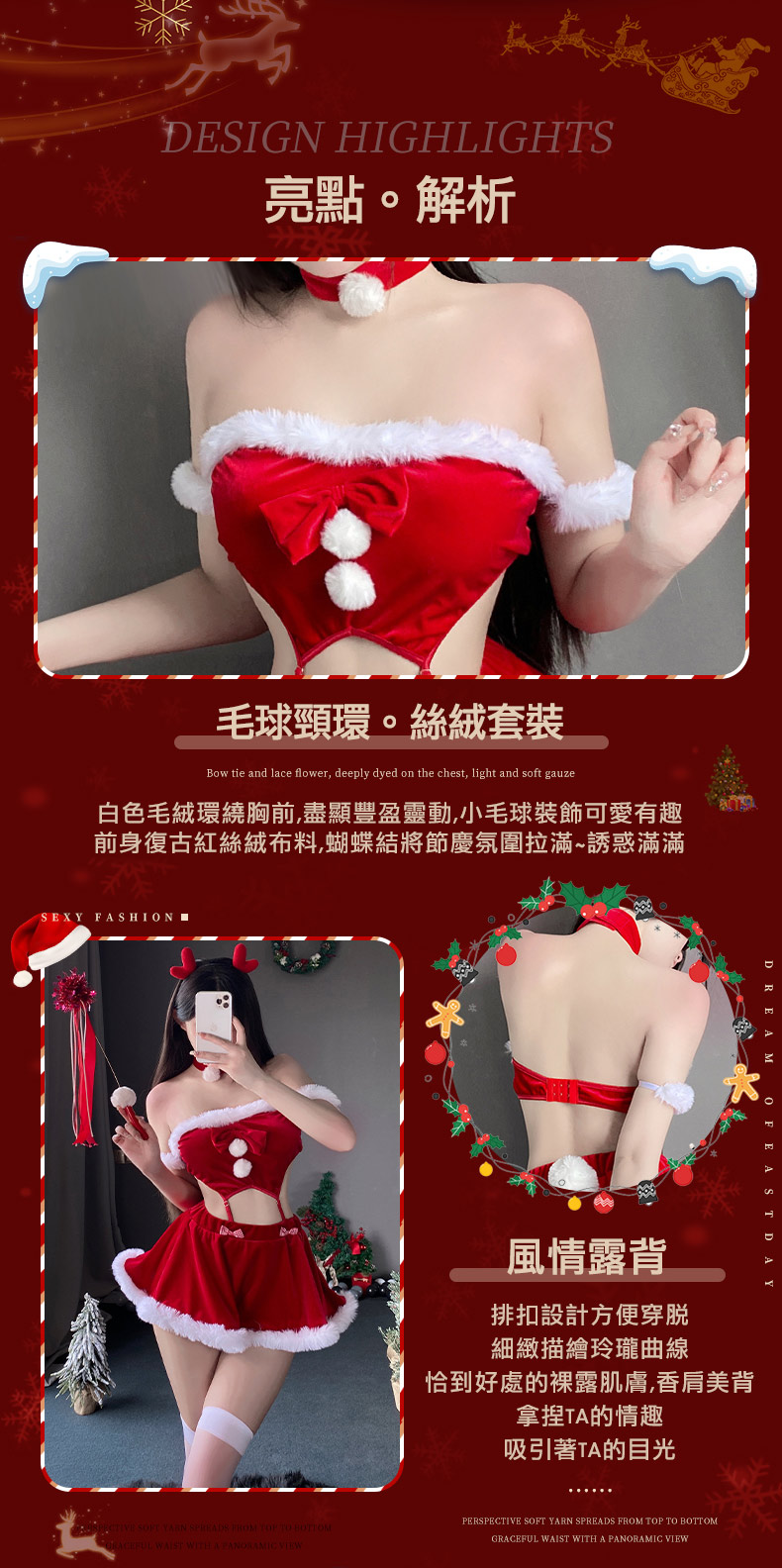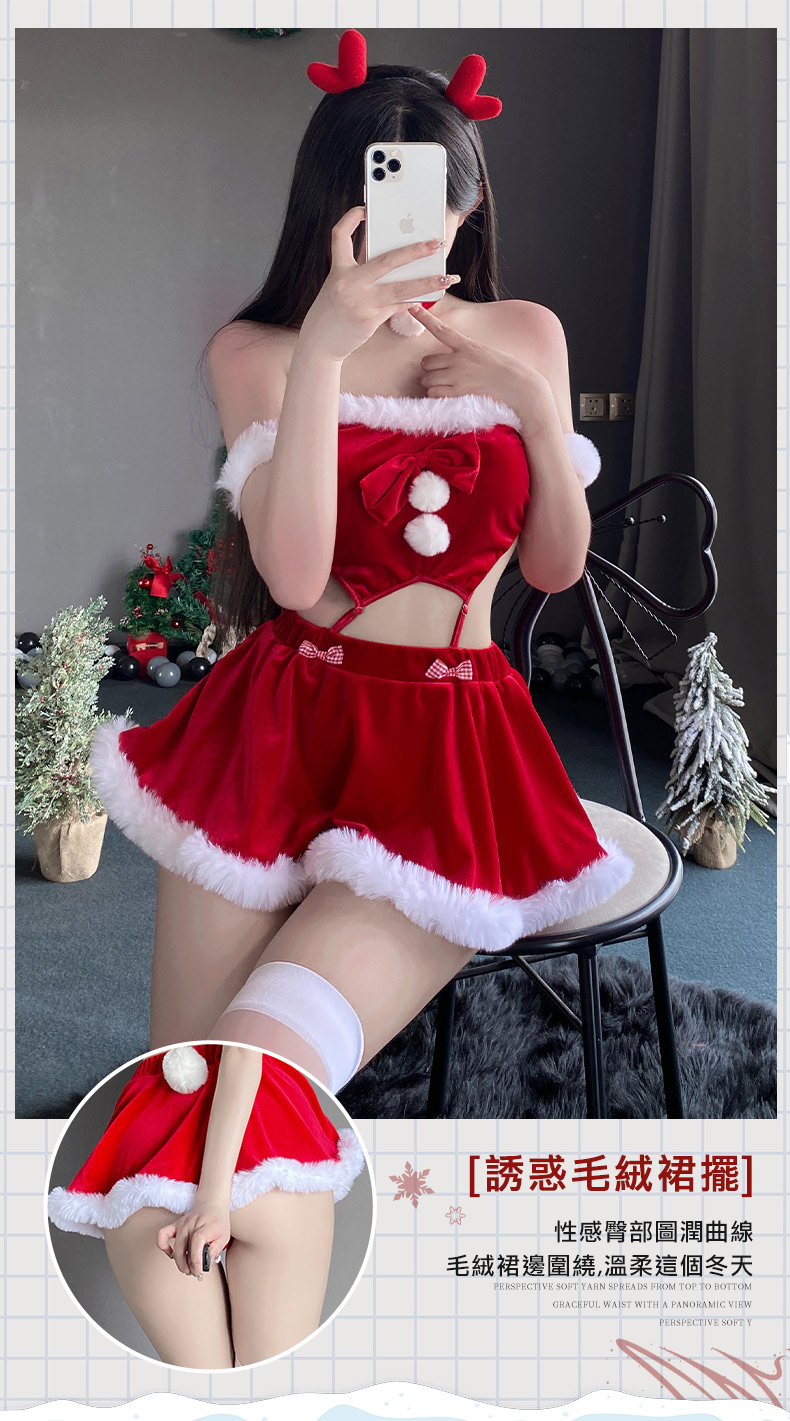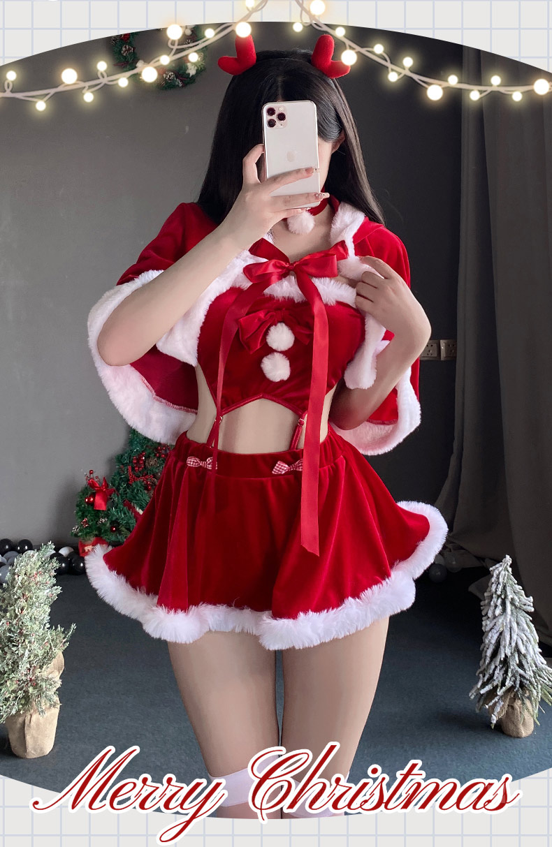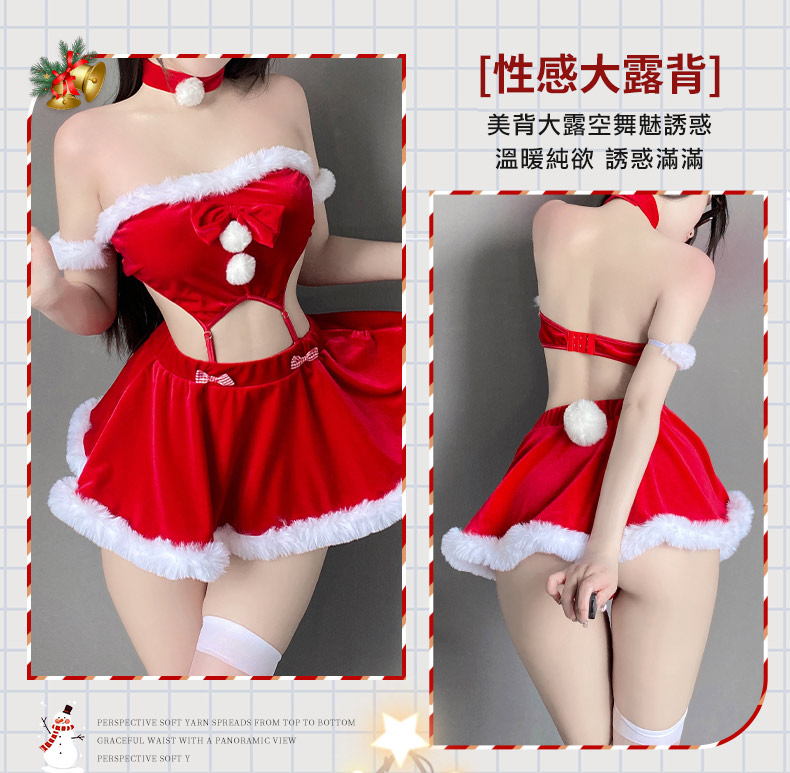 商品名:クリスマス 深Vベルベット クロスリボン美背ドレス