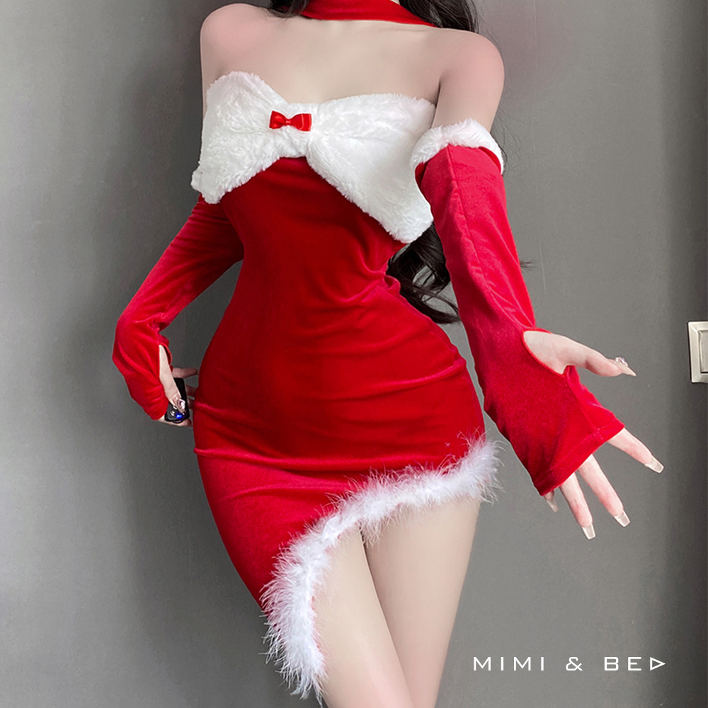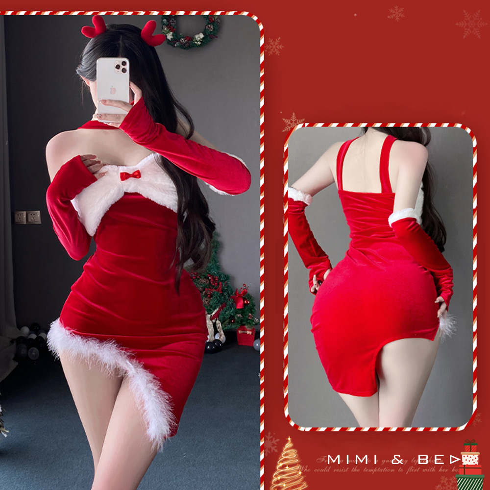 商品名:クリスマス 深Vリボン ベルベットワンピ