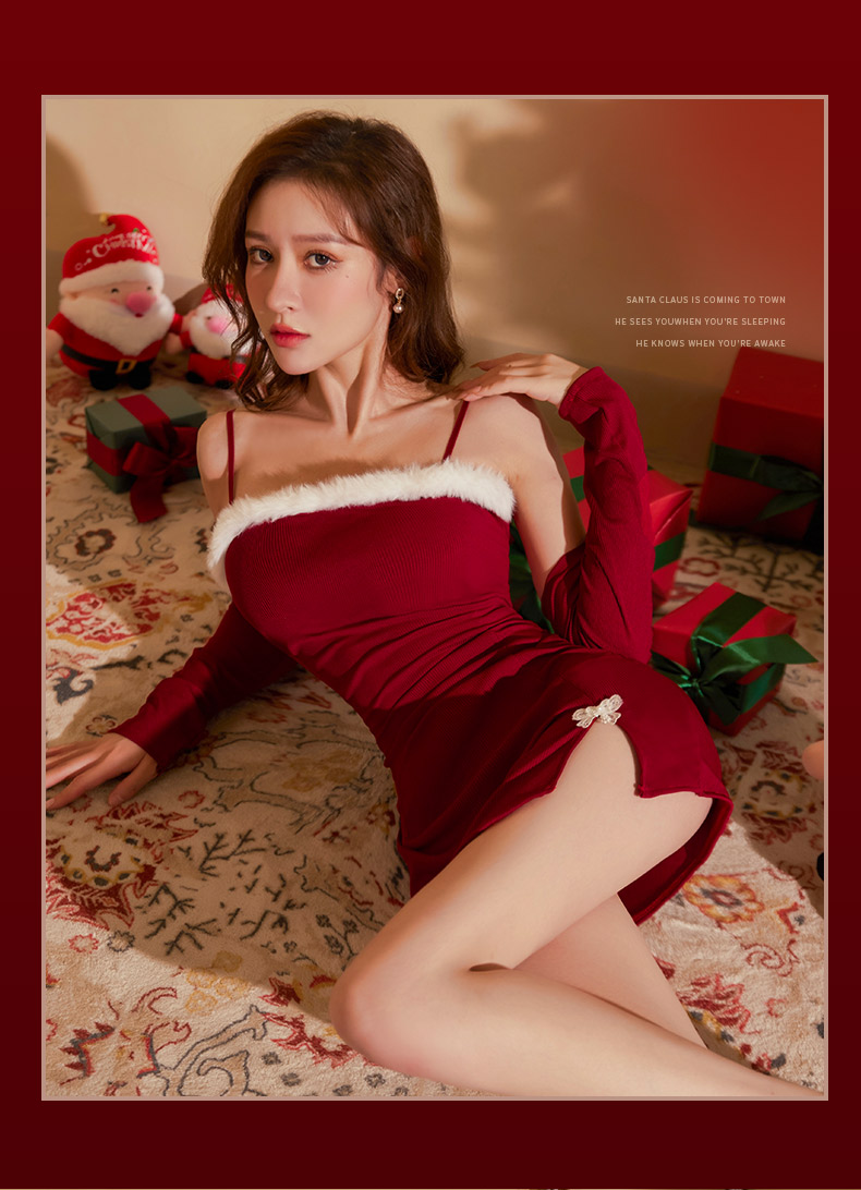 商品名:久慕雅黛ワインレッドニットワンショルダーワンピース