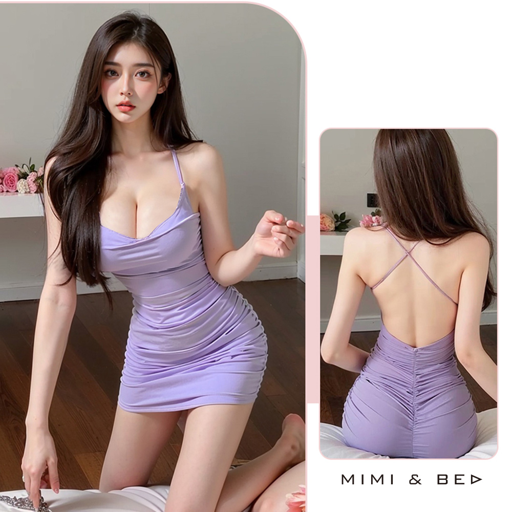 芳鄰嬌妻。深V誘惑曲線美背吊帶裙。紫艷嫵媚 MIMIBED個
