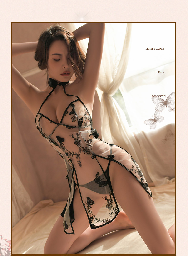 商品名:MIMIBEDホルターネックバラ刺繍チャイナドレス