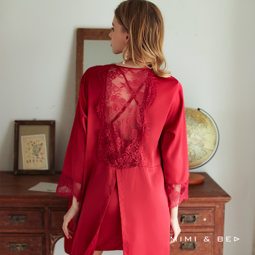 商品名:エレガントレーススリップドレスガウン付き 2点セット