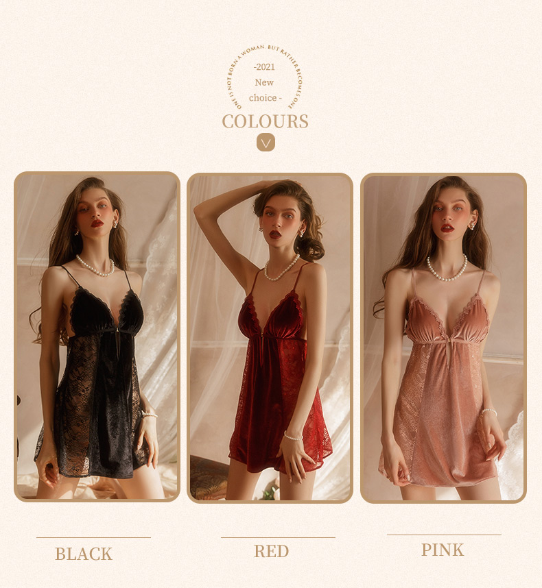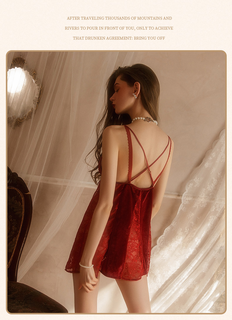 商品名:フロントホック切り替えベルベットスリップドレス。レッド(RED)