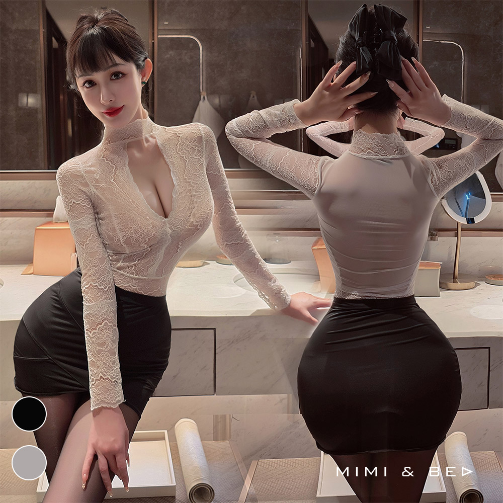 商品名:艶誘デザイン 純欲レース OL特助 秘書風 ボディラインワンピース(全2色)
