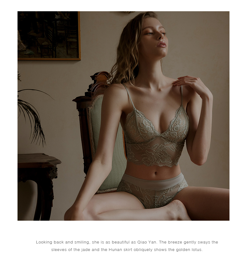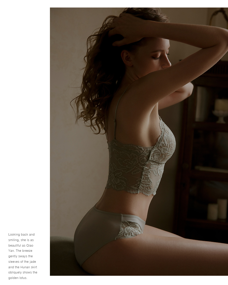 - 法式蕾絲優雅內衣套裝 性感露背柔美腰身