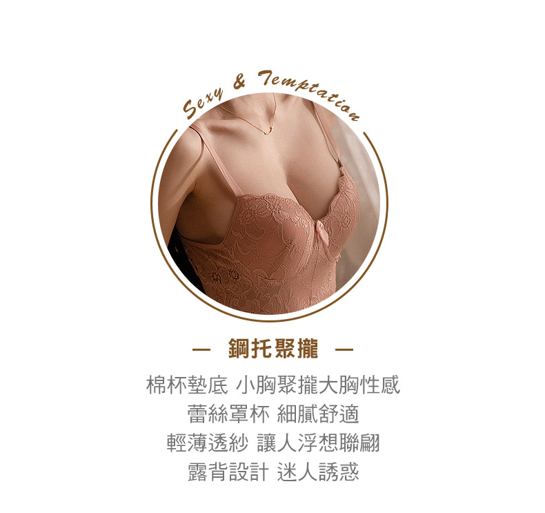 - 輕透薄款 浪漫的花邊蕾絲包圍胸部