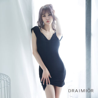 久慕雅黛 雙色性感蕾絲後開叉吊帶睡裙。黑色