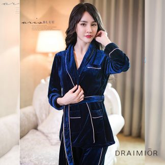 久慕雅黛-金絲絨居家睡衣套裝。藍色