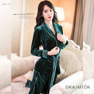 久慕雅黛-金絲絨居家睡衣套裝。綠色