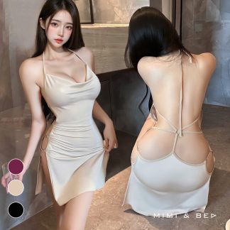 性感深V薄紗透視睡裙。3色 MIMIBED