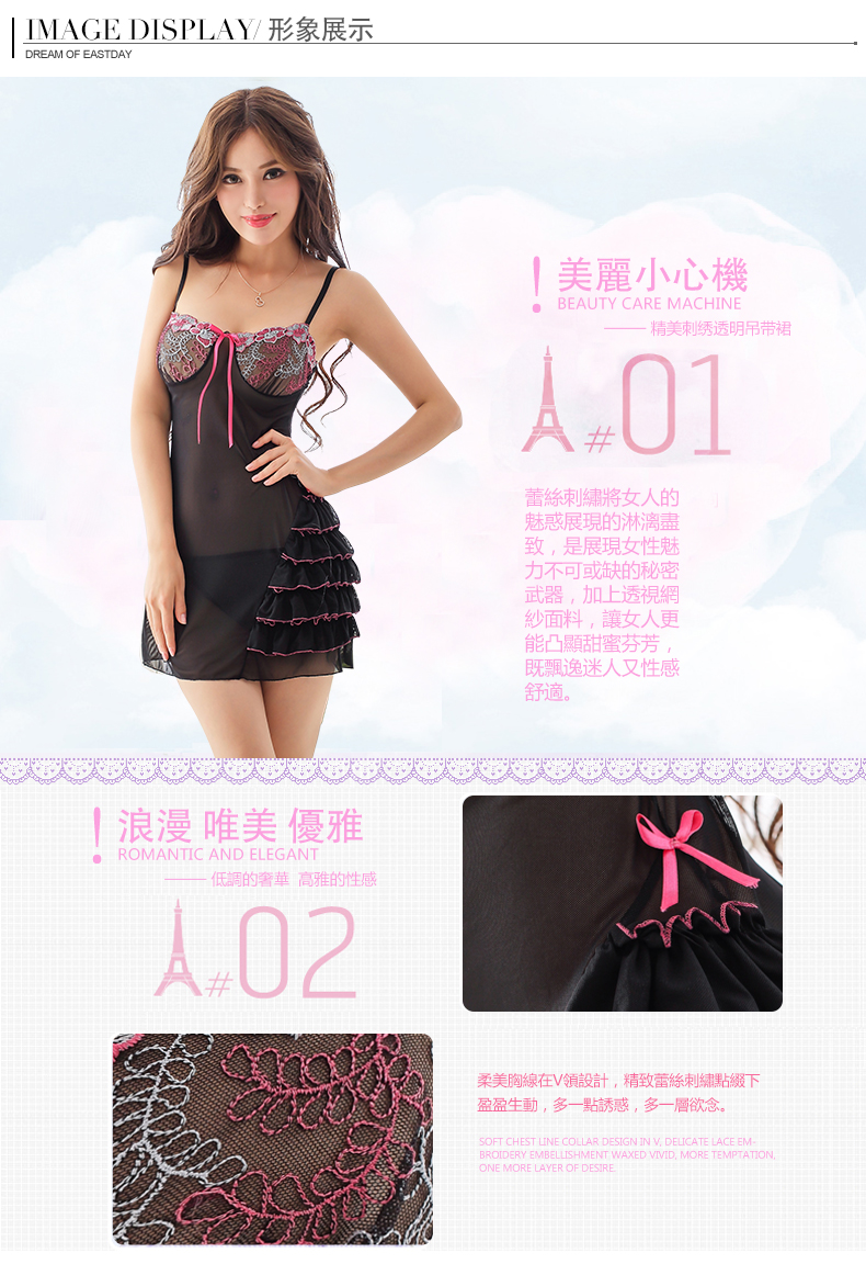 - 黑色透明柔紗拼接蕾絲 性感加分浪漫添彩