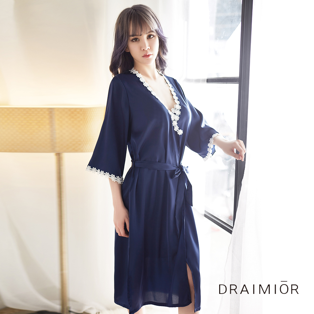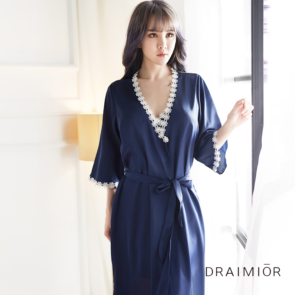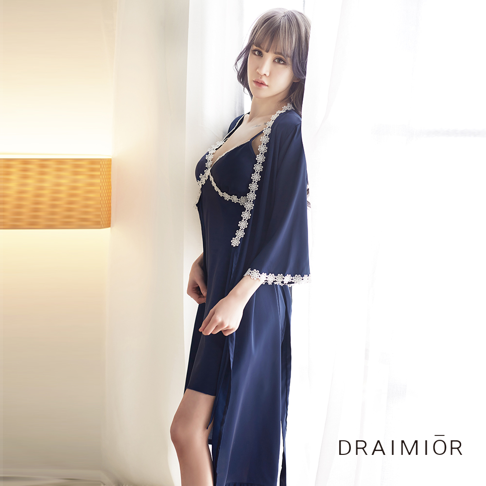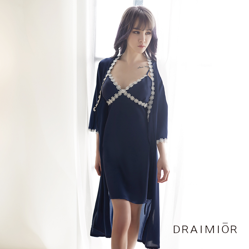 久慕雅黛 水溶花邊優雅性感睡衣套裝。藍色