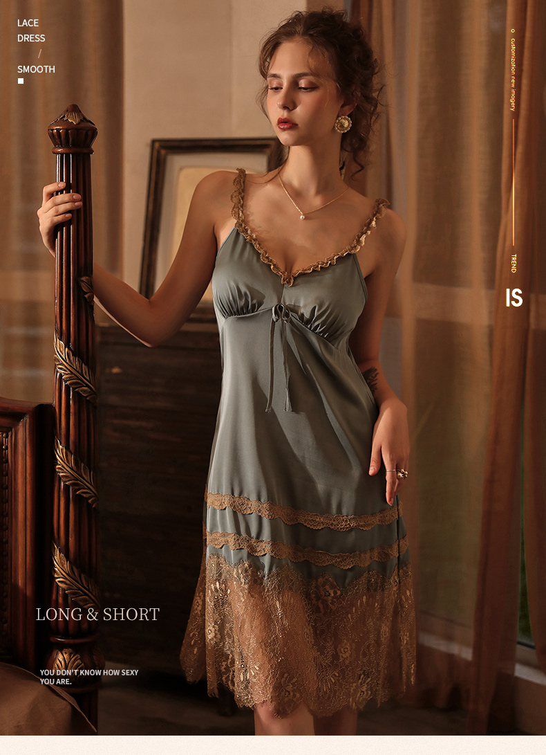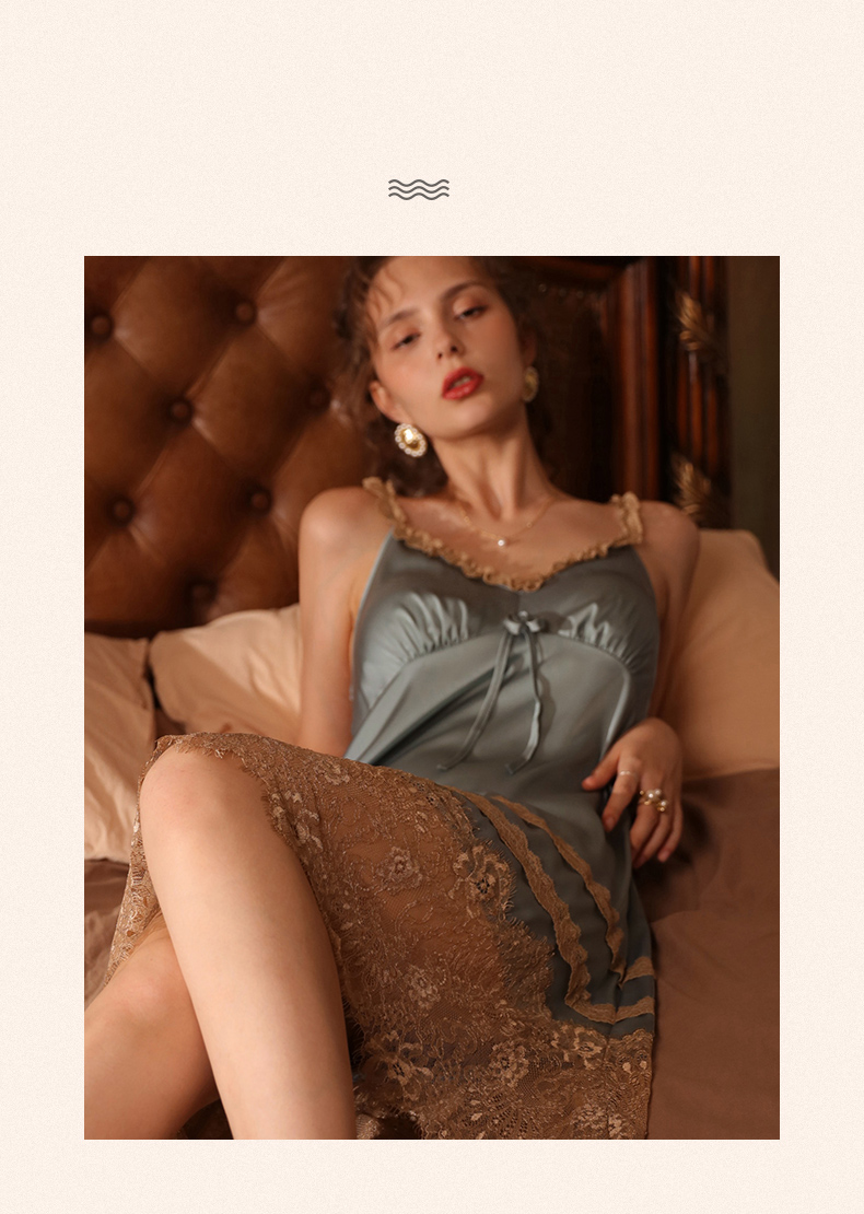 - 三層花紗蕾絲拼接緞面 華麗性感絕美時尚