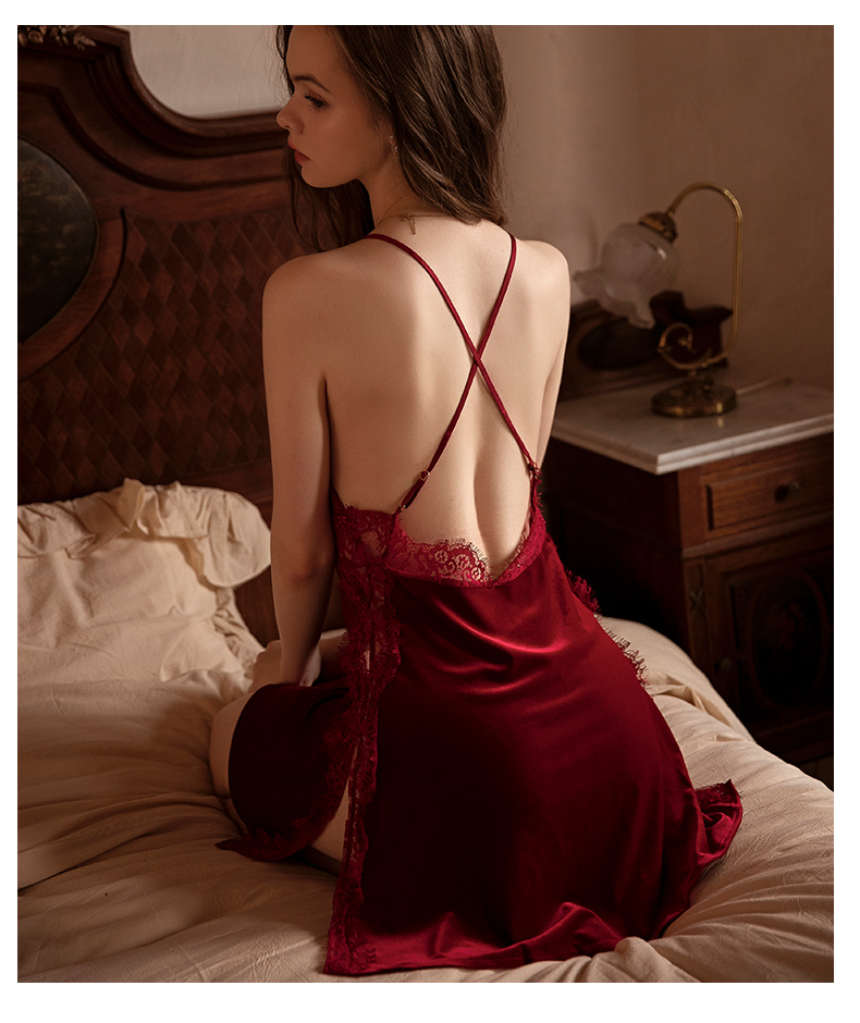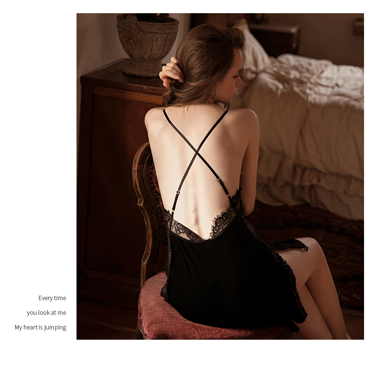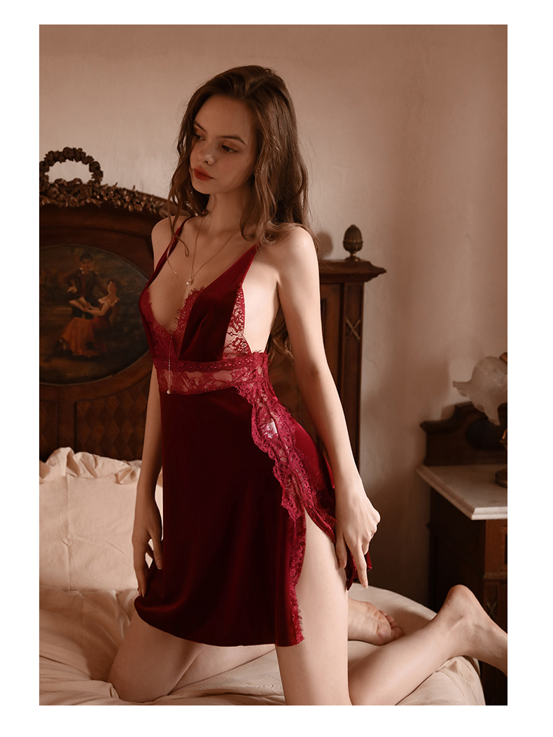 - 胸前露背深V鑲嵌立體水溶花朵蕾絲 性感迷人