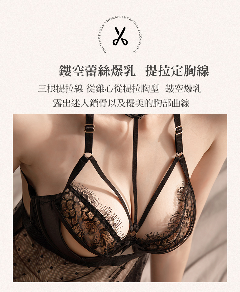 - 蕾絲花邊輕裹胸部 輕透波點薄紗若隱若現