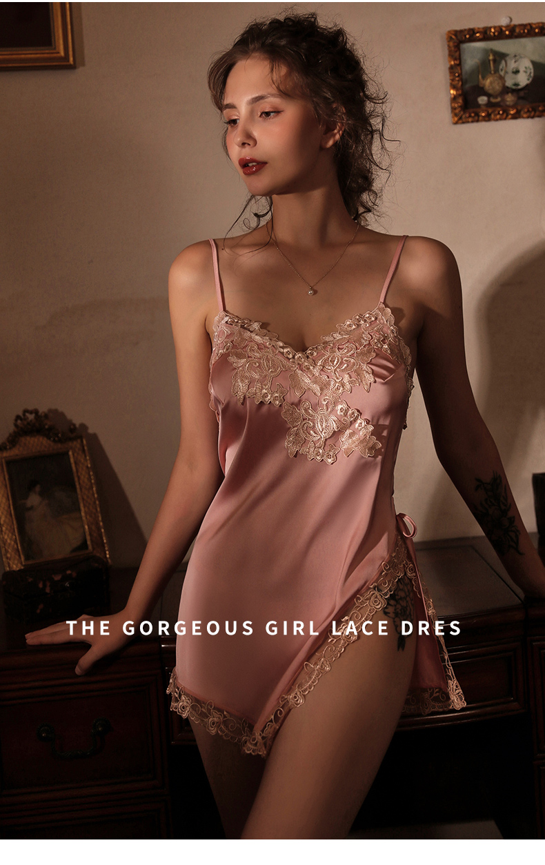 - 側面腰間鑲嵌立體蕾絲開叉綁帶 美麗與眾不同