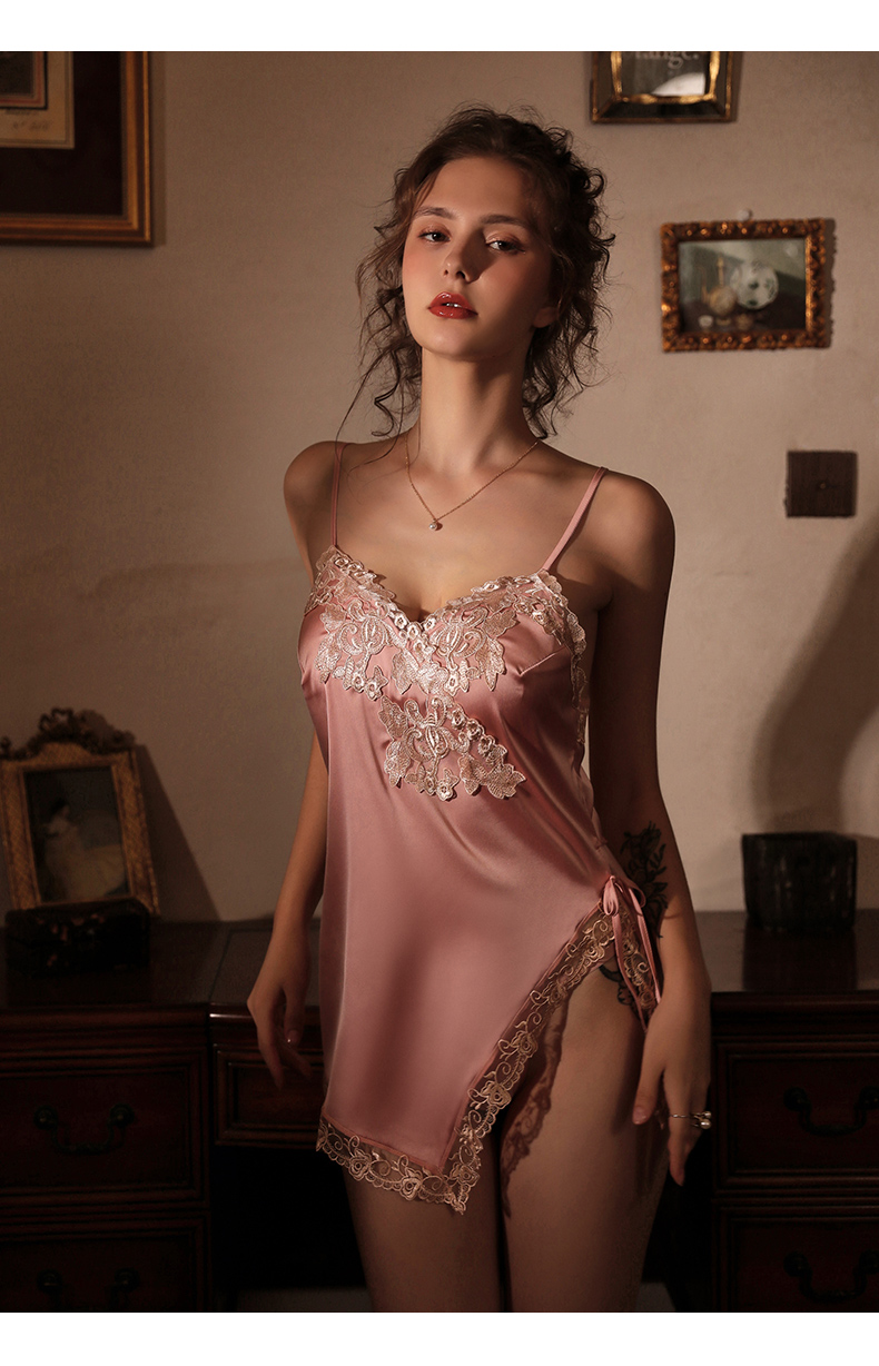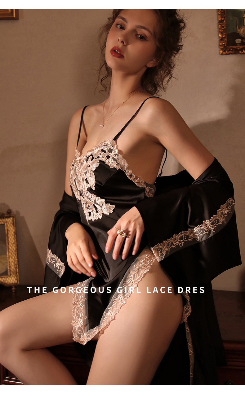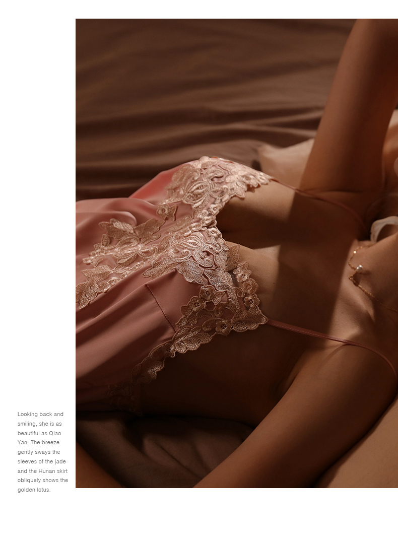 - 如旗袍般開叉 閃光絲線藏匿于蕾絲之中