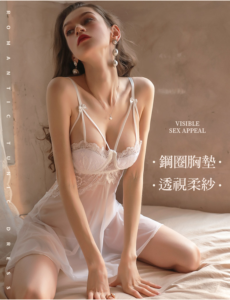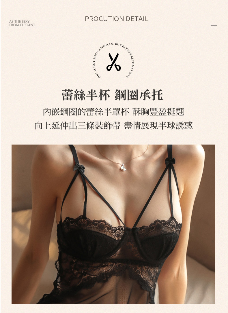 - 胸前半罩杯甜美花邊蕾絲 性感迷人