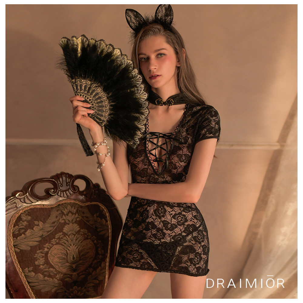 - 精緻盤扣旗袍古典優雅 鏤空蕾絲透視誘惑