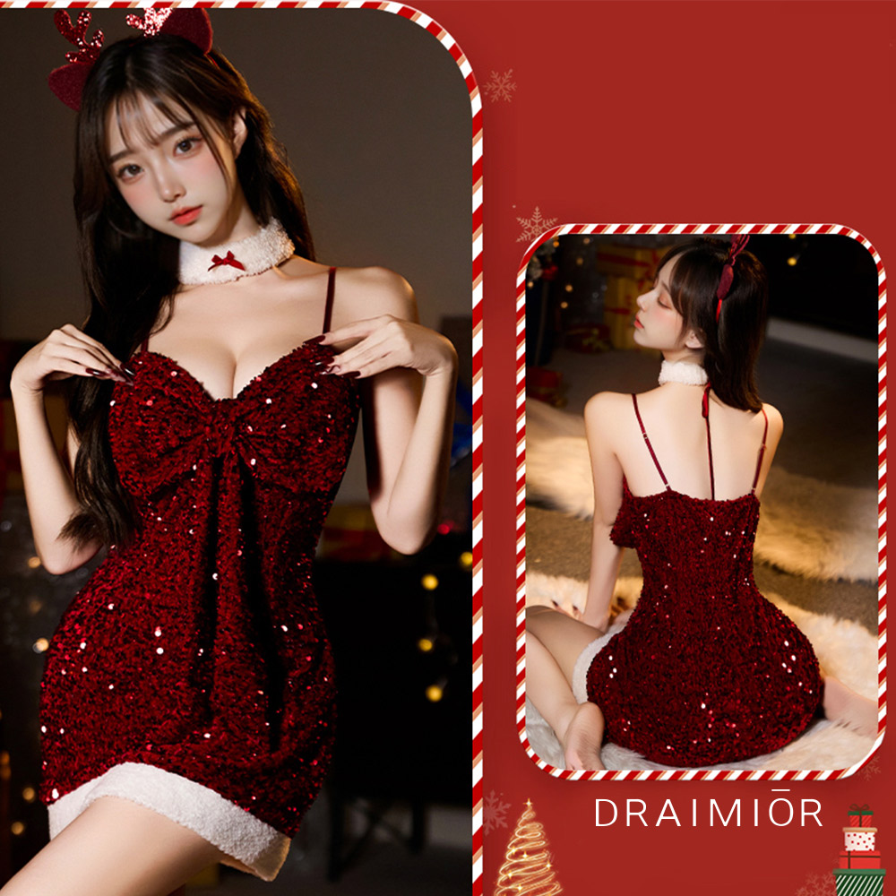 聖誕禮物閃光蝴蝶結吊帶連身裙 DRAIMIOR