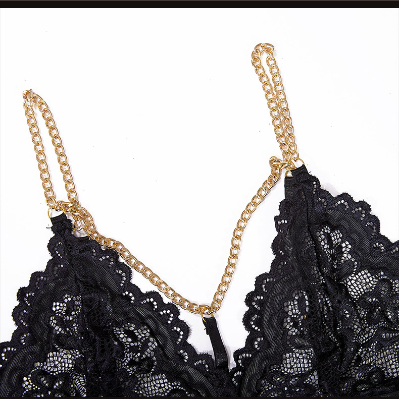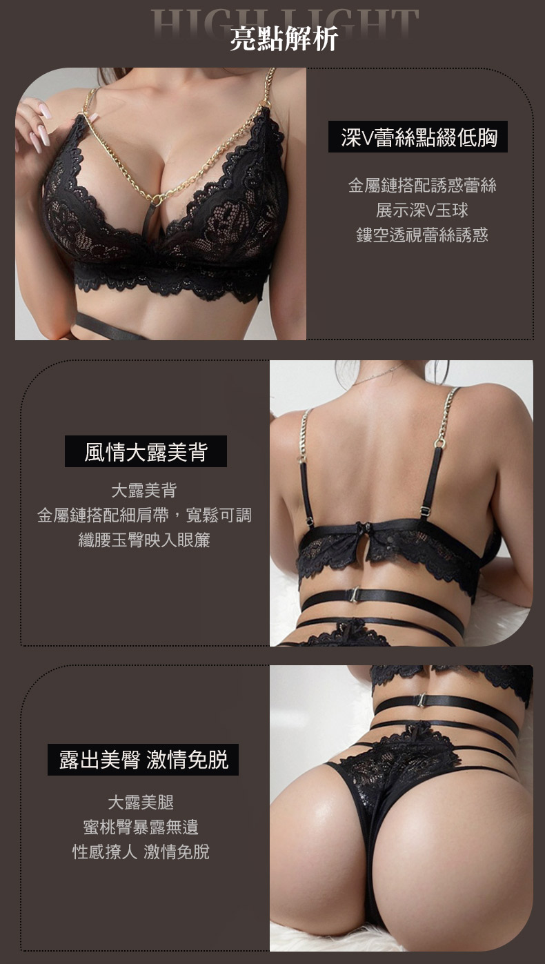 - 花邊蕾絲金屬鍊誘惑比基尼 性感誘人