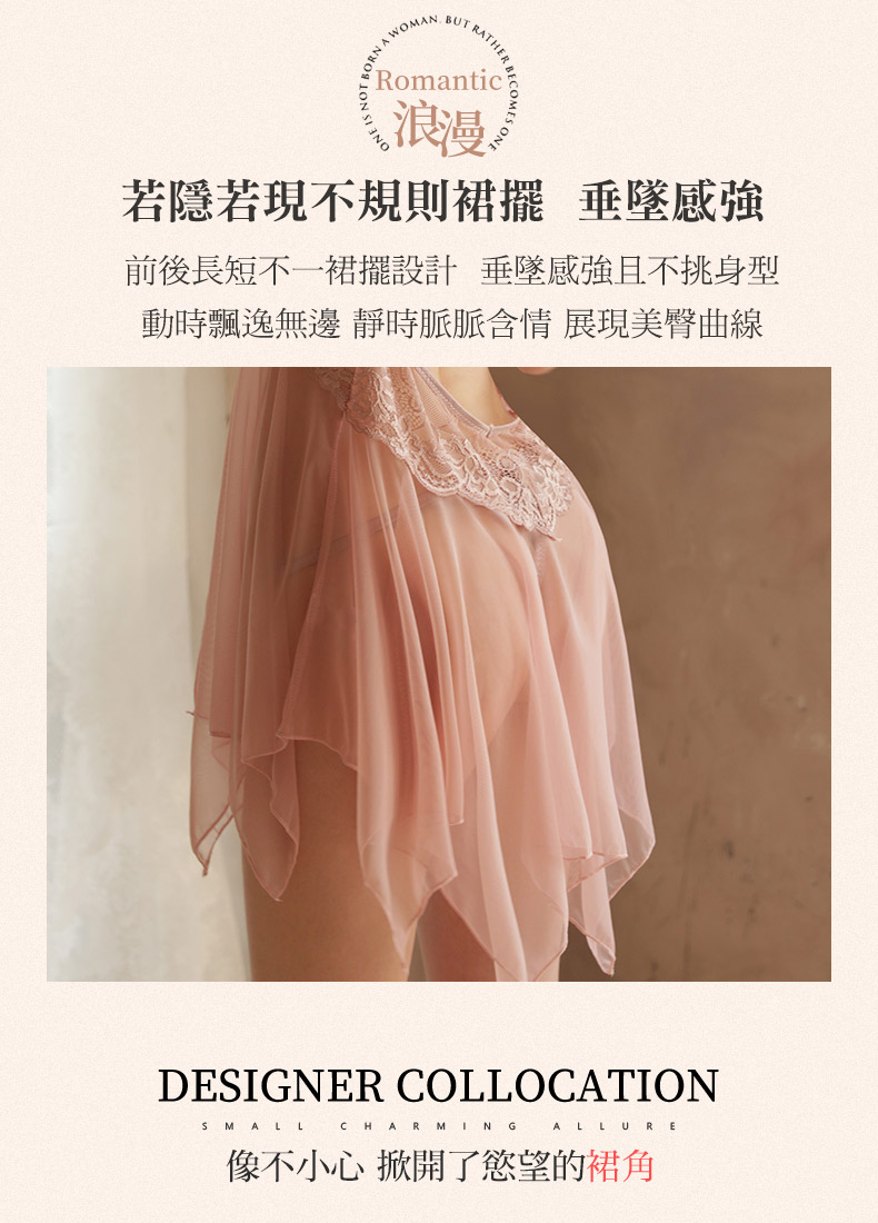 - 胸前精緻提花蕾絲 輕薄柔紗美人的仙氣